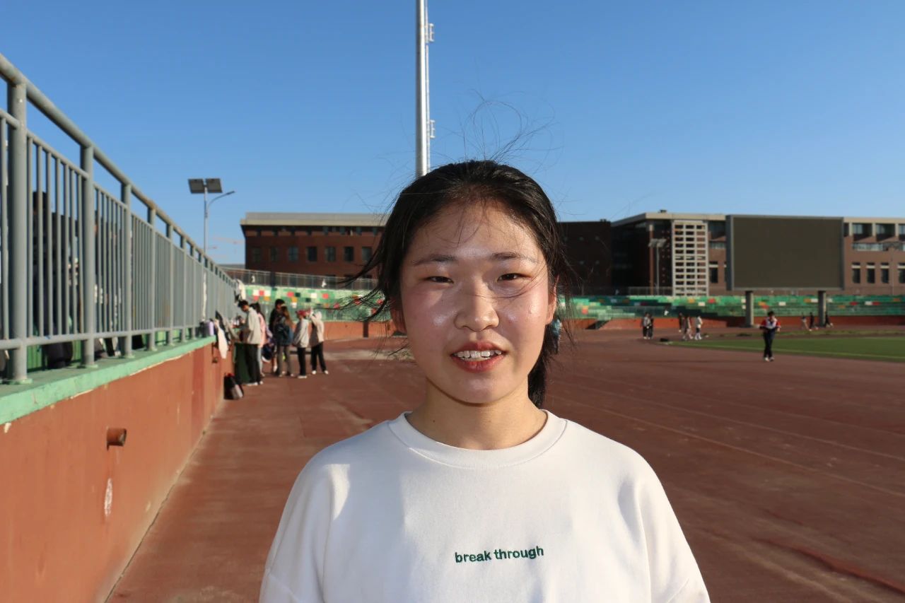 接下来接受采访的是参加800米和1500米的娜日苏格同学。她对于去年没能参加运动会深感遗憾,所以希望这次能通过自己的努力为学院取得好成绩,同时她也鼓励自己和其他运动员相信自己,展现最好的状态。