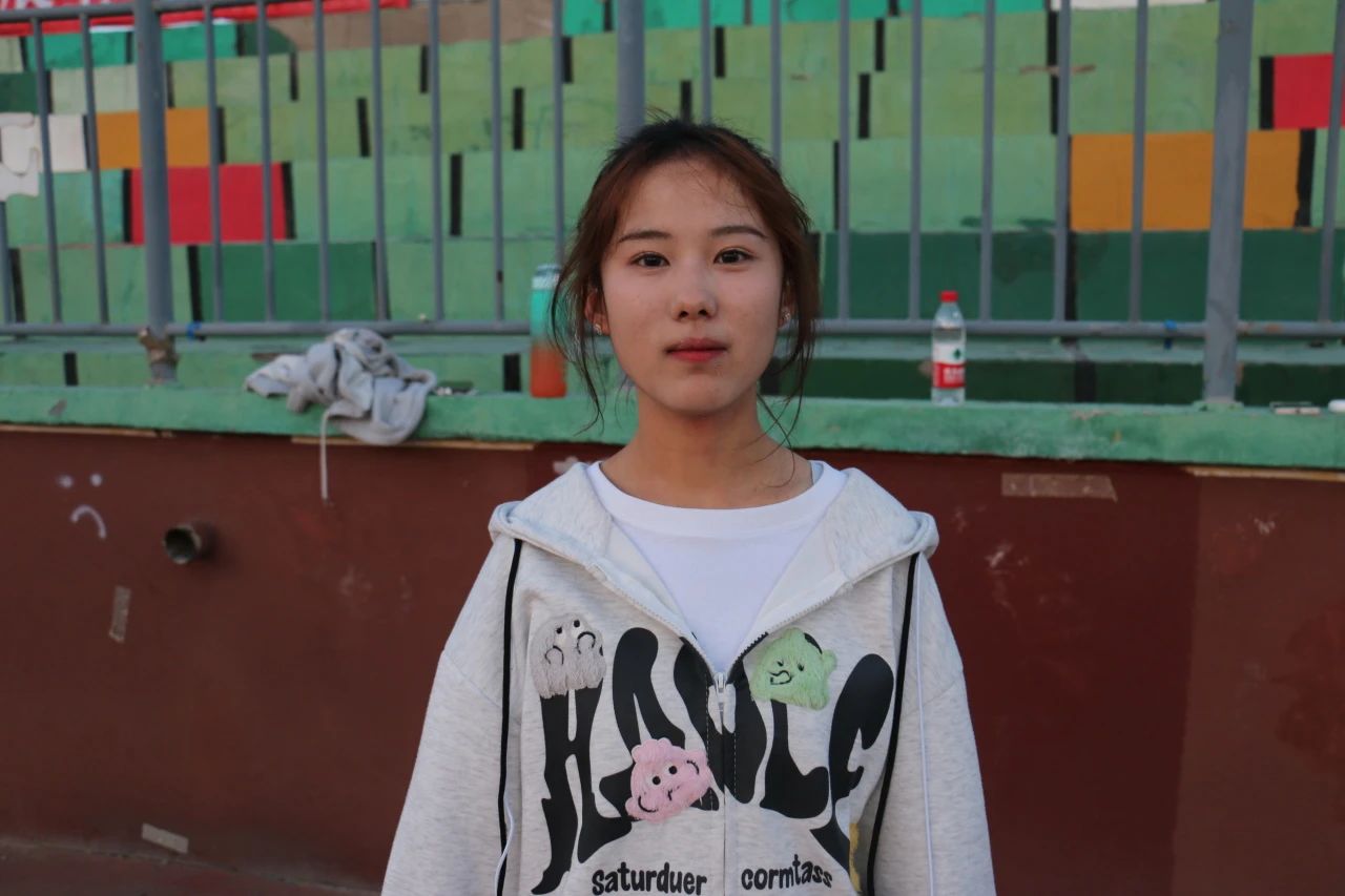 随后,我们采访了参加投掷项目——铁饼和标枪的张羽飞同学。针对投掷项目,她自己每天会进行大量的重复练习,力求在比赛中做到零失误。她说选择参赛,是因为对这个项目很感兴趣,也希望通过比赛锻炼自己。对于即将到来的运动会,她充满期待,相信自己能够展现出最佳状态。