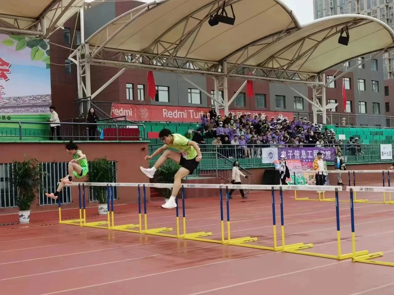 蓄力,起跑,你奋力往前。破风声声显示出你的速度,你的发丝在风中肆意飘扬。勇敢往前迈吧,前方的重重栏杆挡不住你轻快的脚步,一步步跨出你的实力,跨出你的激情,跨出你的风采!听!耳旁风在为你助兴,身后我们在为你呐喊!