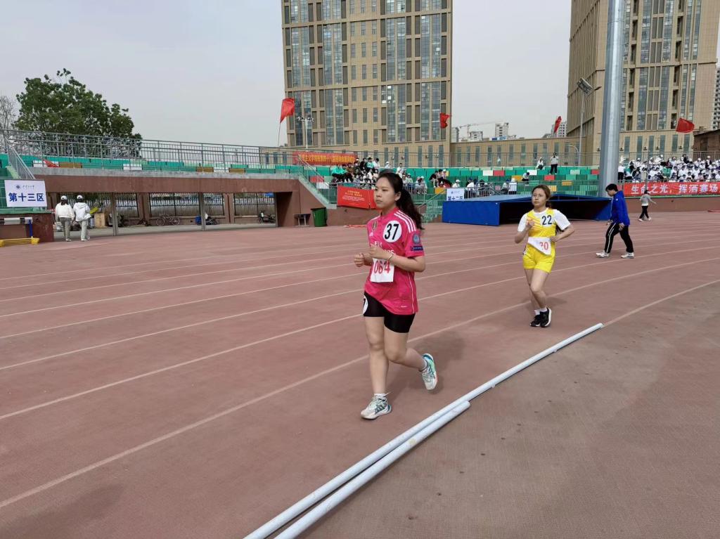 5月10日下午,BB贝博韩阳光同学参加了女子学生组3000米竞走决赛,凭借出类拔萃的耐力与坚韧不拔的毅力,以19分40秒的好成绩斩获女子学生组竞走决赛第一名。