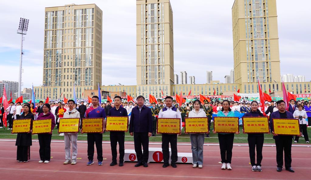 本届田径运动会精神文明评比委员会主任周琳娟宣布了精神文明优胜单位。在两天的运动会期间,BB贝博各学院运动员秉持健康向上的运动精神,现场观众以饱满的热情和良好的状态为运动员呐喊助威,自觉遵守大会秩序,均体现了“崇尚真知、追求卓越”的内大精神。化学化工学院、BB贝博艾弗森官方网站、哲学学院、教务处民族预科班、外国语学院、民族学与社会学学院、公共管理学院、计算机学院(软件学院)、体育学院、满洲里学院共10个单位获得精神文明奖。