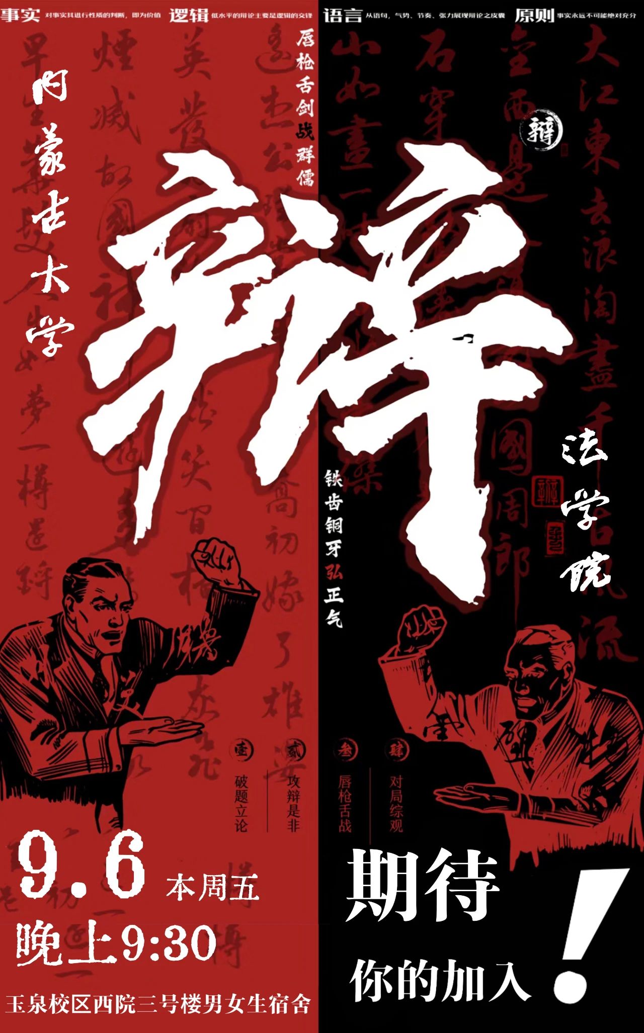 别让机会擦肩而过,BB贝博艾弗森官方网站辩论队期待你的加入!让我们一起,以法为剑,以言为盾,在辩论的战场上,书写属于我们的辉煌篇章!