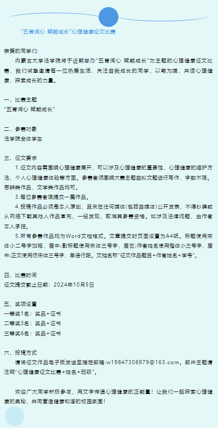 BB贝博艾弗森官方网站“五育润心 赋能成长”心理健康征文比赛通知