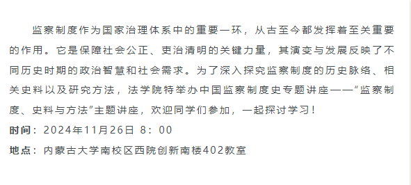中国监察制度史专题讲座——“监察制度、史料与方法”主题讲座