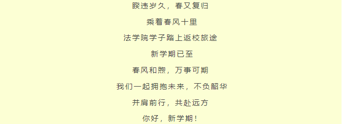 春风送暖,学子归来。愿大家在新学期里,如繁花般绽放光彩,学业蒸蒸日上,梦想熠熠生辉;愿大家心怀远方,步履坚定,在知识的沃土中播种希望,收获成长与辉煌!