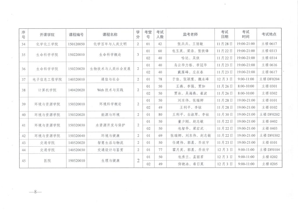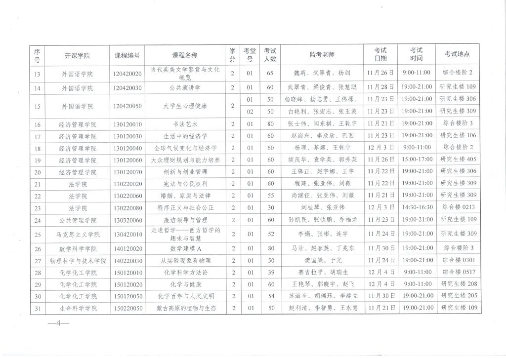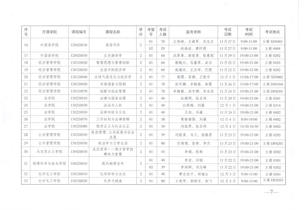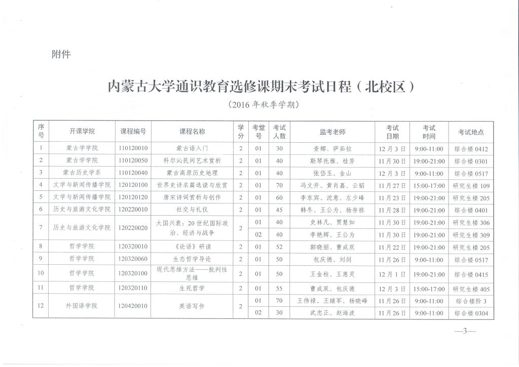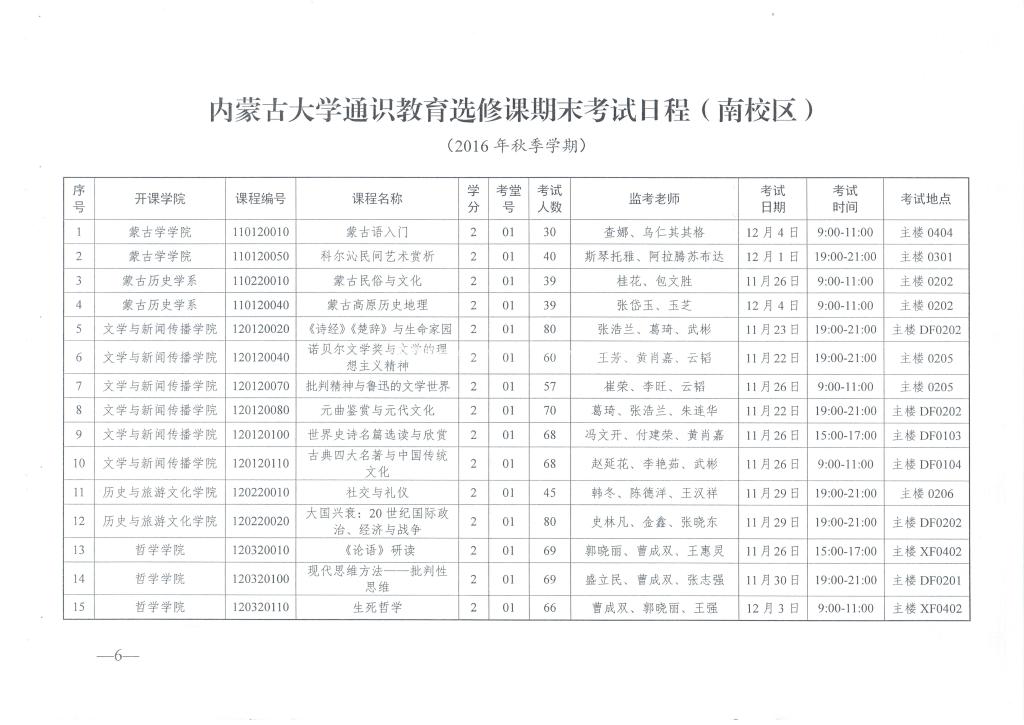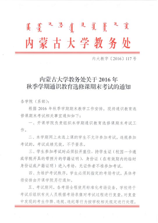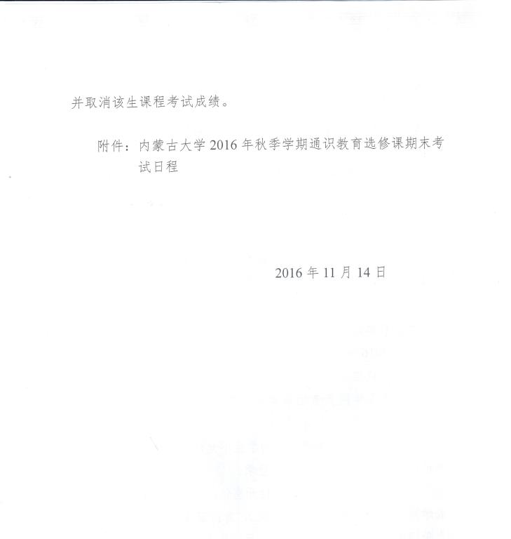 转发关于2016年秋季学期通识教育选修课期末考试安排的通知