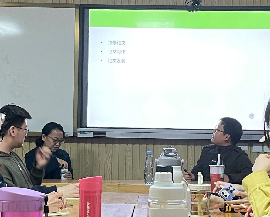 祝教授介绍了法学家、法律科学、私法研究等专业度高的期刊,鼓励同学们进行投稿。并介绍了论文发表的步骤,包括编辑初审、专家外审、编辑会审、排期发表四步,用时很长,难度很高,这就要求我们在撰写和发表论文的过程中,必须多读书,多写作、深耕细耘,提高知识的广度和深度。