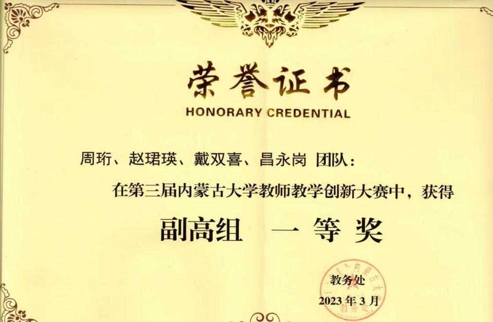 BB贝博教师周珩、赵珺瑛、戴双喜、昌永岗团队获得“副高组”一等奖;塔娜、李卫东团队获得“正高组”二等奖。