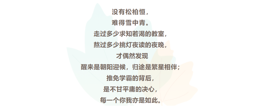 “每个保研er在保研过程中都会经历各种各样的压力,也会收集到无数的温暖与善意,只要我们胜不骄,败不馁,平心静气地充实自己的专业知识,在每次面试中发挥出自己的全部实力,最后一定会收获到令人心动的offer的。”