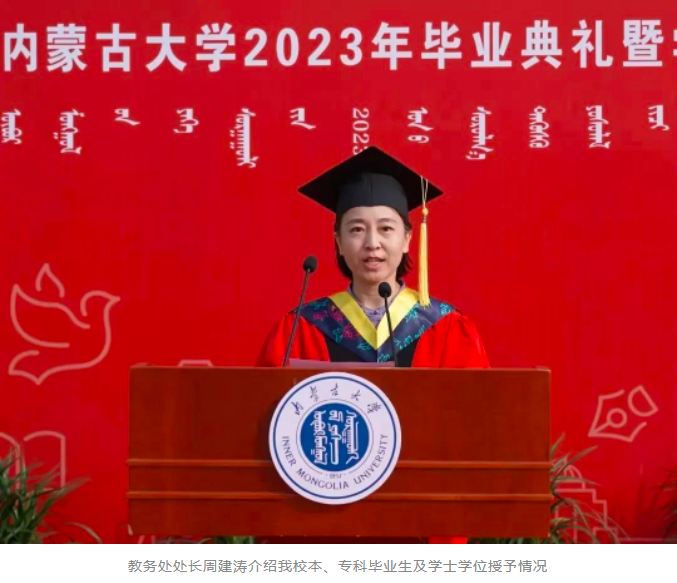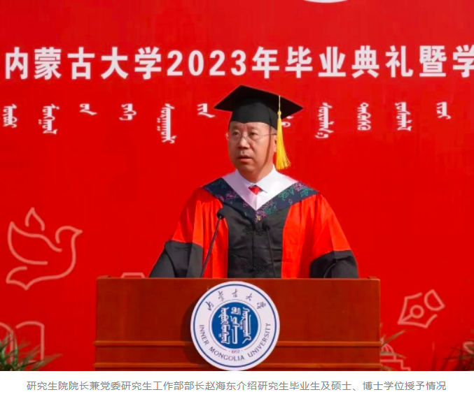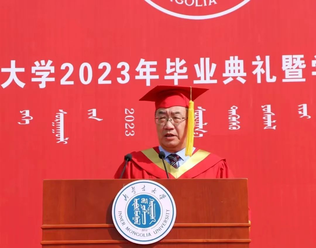 中国科学院院士、BB贝博名誉校长赵东元,中国社会科学院学部委员、一级研究员、文哲学部主任、BB贝博特聘教授朝戈金,BB贝博优秀校友代表、北京航空航天大学宇航学院航天信息工程系主任、国家杰出青年基金获得者史振威,校党委书记刘志彧,校长武利民,纪委书记、监察专员张利平,副校长额尔很巴雅尔、高光来、刘永斌、杜晓东、杜凤莲,校党委委员、交通职业技术学院党委书记孙智凭,党委副书记、院长白托娅,校学位评定委员会委员,各单位、各部门副处级以上干部,各学院导师代表及2023届毕业生参加了毕业典礼。典礼由副校长杜晓东主持。