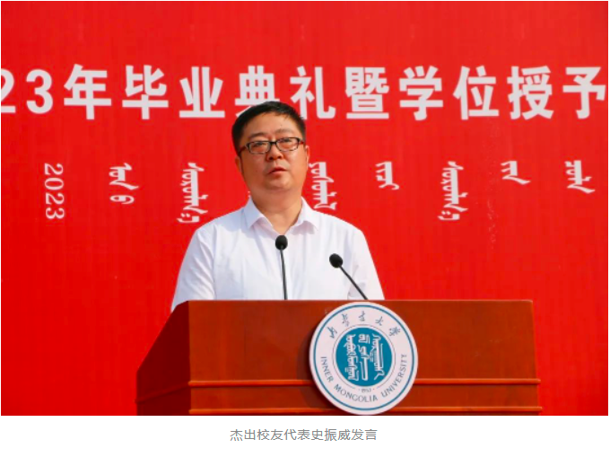 杰出校友代表、北京航空航天大学宇航学院航天信息工程系主任、国家杰出青年基金获得者史振威在发言中与即将毕业的学弟学妹们一起回忆了他在内大求学的青春岁月,回顾了毕业后全身心投身国家重大需求、追逐人生梦想的成长历程。他与即将踏上人生新征程的同学们分享了三点人生经验和体会:一要“求真务实”,要脚踏实地做事;二要有远大的理想,志存高远;三要把自身前途命运同国家民族前途命运紧紧联系在一起,做国家需要的人。他说,毕业不是结束,而是开始,希望同学们带着感恩之心,带着责任之心,带着奋斗之心,走向更加美好的明天。