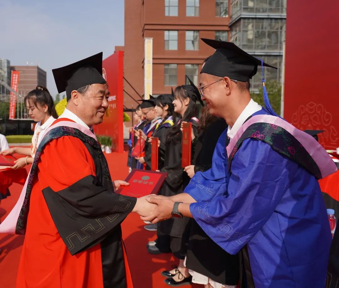 毕业典礼上,教务处处长周建涛介绍了BB贝博本、专科毕业生及学士学位授予情况。研究生院院长兼党委研究生工作部部长赵海东介绍了研究生毕业生及硕士、博士学位授予情况。2023年,全校共有3500余名本科毕业生获得学位,2500余名研究生毕业生获得学位。校学位评定委员会各位委员分别为博士毕业生、硕士毕业生和本科毕业生授予学位并颁发了学位证书。