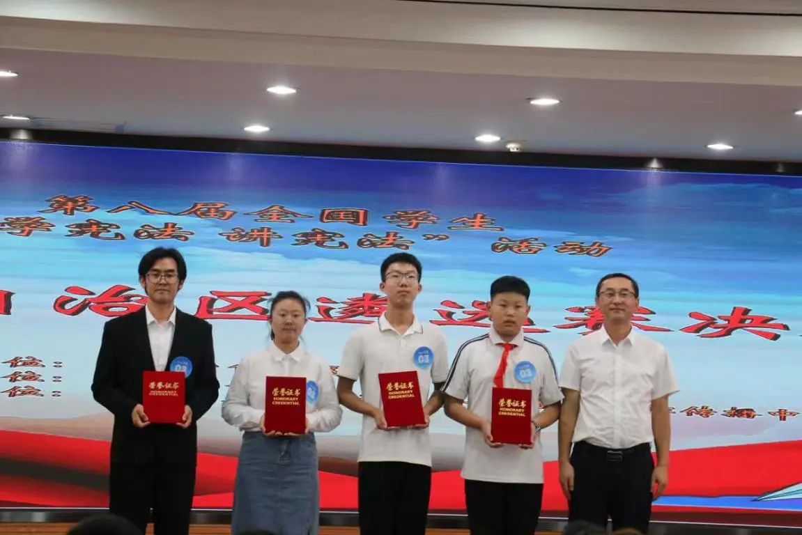 为深入学习宣传贯彻党的二十大精神,认真学习贯彻习近平法治思想,持续推进青少年宪法学习宣传教育,由内蒙古自治区主办、BB贝博艾弗森官方网站承办的第八届全国学生“学宪法 讲宪法”活动内蒙古自治区遴选赛决赛于8月26日、27日在BB贝博学术会议中心八号会议室成功举办。经过层层选拔、激烈角逐,BB贝博2021级张海洋、蔺梓涵两位同学分别夺得高校组演讲比赛一等奖和高校组知识竞赛一等奖,他们将代表内蒙古自治区高校参加第八届全国学生“学宪法 讲宪法”活动全国赛。BB贝博2021级尚凯绮同学和徐嘉晨同学荣获高校组演讲比赛二等奖。2021级毛勇同学、2022级原晓茹同学荣获高校组知识竞赛二等奖。