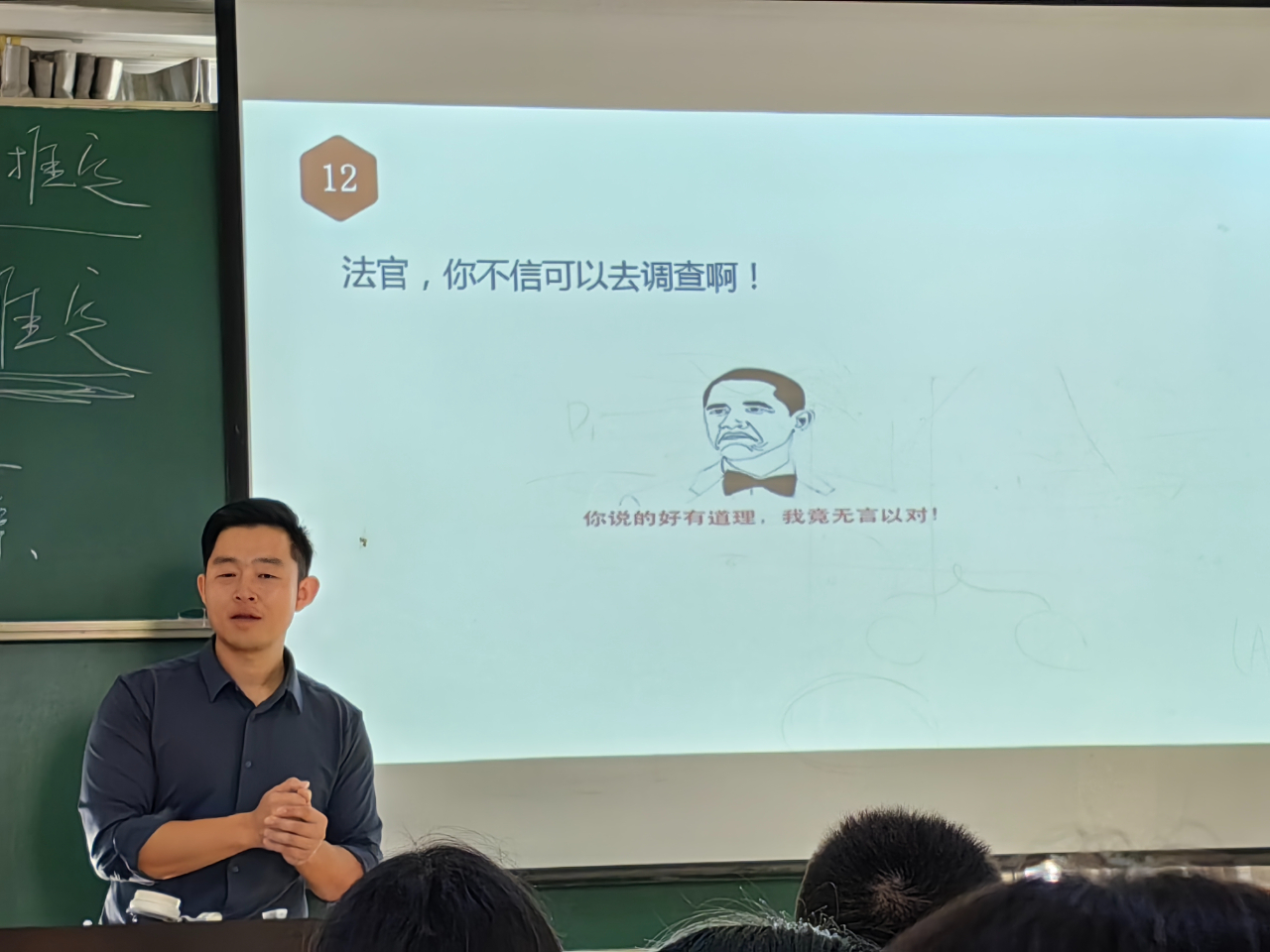 在讲座中,杨庭长首先谈到法官进行审判时应当坚持“以事实为依据,以法律为准绳”的原则,准确认定事实,精准适用法律,做出公正裁判,实现公平正义。随后以幽默风趣的语言,运用相关法律条文与丰富的实务案例,详细地讲解了民事证据理论中“事实认定”“举证证明责任”的相关内容。进行到第二部分,杨庭长以庭审流程为线索,结合一系列真实案例,再现了庭前准备到开庭审理的全过程,并向同学们展示了一份极为精彩的裁判文书。