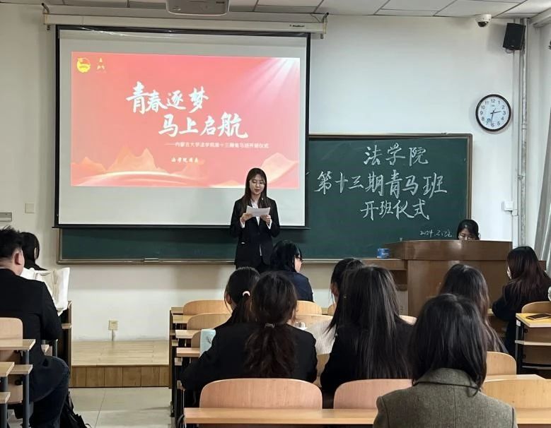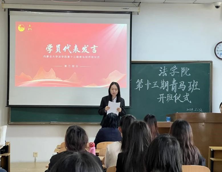 青马班学员代表马佳鹤发言,她表示自己将努力提升政治素养和综合能力,并发挥骨干作用,带动身边同学坚定信仰、主动作为,以笃行不怠的精神面貌和全体青马班学员一起做青春领航的同路人,在新时代新征程唱响更加精彩的青春之歌。