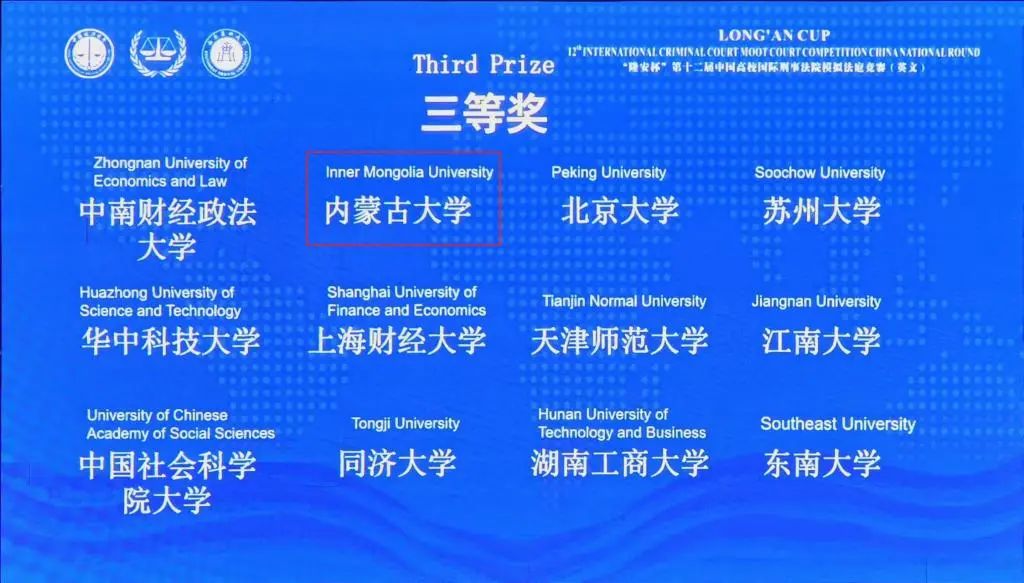 近日,“隆安杯”第十二届中国高校国际刑事法院模拟法庭竞赛(英文)在西南医科大学举行。BB贝博代表队凭借扎实的法律功底与出色的庭辩表现,荣获中国赛区三等奖。
