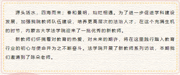 陈朵,内蒙古呼和浩特人,毕业于南京师范大学BB贝博艾弗森官方网站,主要研究方向为民事诉讼、家事诉讼、司法制度。已发表CSSCI及扩展版论文2篇,普刊1篇,参编著作1本,主持并参与国家级项目、省部级项目5项。