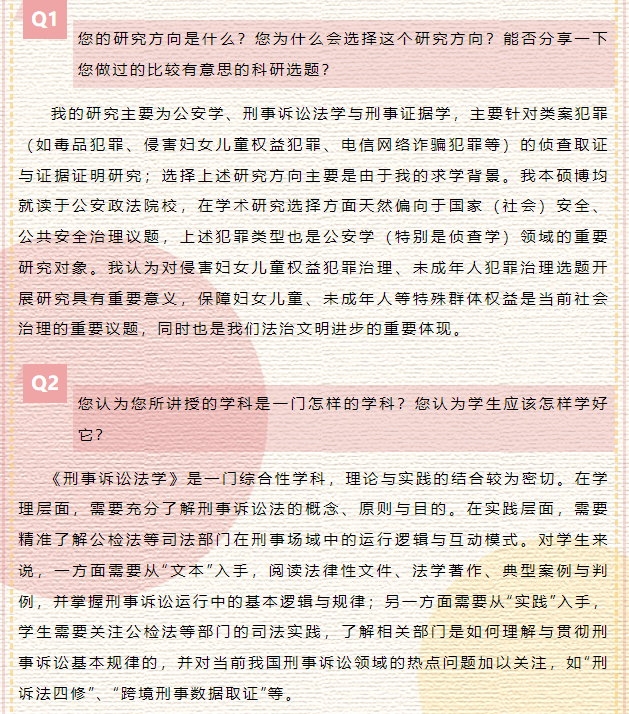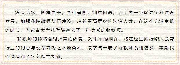 赵安晓宇,新疆伊犁人,本硕博均就读于中国人民公安大学,主要研究方向为侦查学、刑事诉讼法学及未成年人法学。博士期间发表学术论文5篇,其中2篇刊于CSSCI扩展版期刊,1篇被《人大复印报刊资料》全文转载。