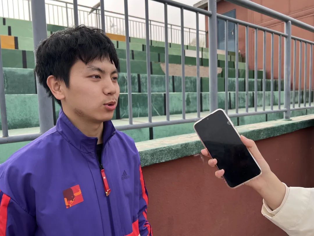 接下来,参加男子400米和4×100米接力的王子豪同学接受了我们的采访,他认为4×100米是最紧张也最具观赏性的比赛项目,他非常喜欢运动并且曾经参加过校田径队,此次运动会对他来说既是机会也是考验,他表示自己将积极投入到赛前训练当中,增强体能、精进跑步技巧,用最好的状态迎接此次运动会,享受比赛的乐趣。