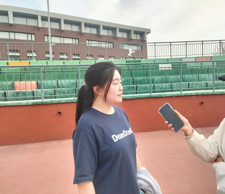 最后,我们采访了参加跳高项目的李子轩同学,她提到自己之前参加过训练,对该项目有一定的了解。她表示这是自己第一次参加大学的运动会,十分期待,同时她希望每一位运动员都能取得理想成绩。她表示自己会跟紧相应的集训,在训练中提高体能,精进相关动作技术。