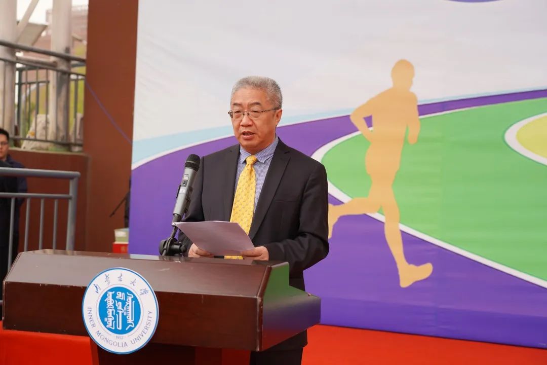 庄严的升国旗仪式后,武利民致开幕词。他指出,“体育强则中国强,国运兴则体育兴”,体育事业的兴衰,关系着国家繁荣强盛,关系着人民幸福安康。BB贝博认真贯彻落实习近平总书记关于教育、体育的重要论述,深入推进全民健身国家战略,把体育工作摆在更加突出位置,树立“健康第一”的教育理念,坚持德智体美劳全面培养的教育体系,持续深化体育教学改革,积极推进体育文化建设,让体育精神浸润校园,不断引导广大师生养成良好的体育锻炼习惯,让每一位师生都能健康、快乐的工作、学习和生活。