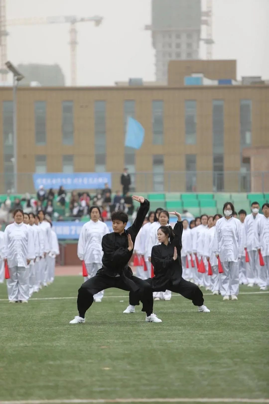运动员代表、体育学院学生杨越、裁判员代表付强分别代表运动员和裁判员庄严宣誓,学生们进行了武术表演。