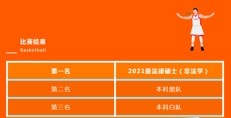 最终,2021级法律硕士(非法学)队取得冠军,本科黑队取得亚军,本科白队取得本次比赛的季军。