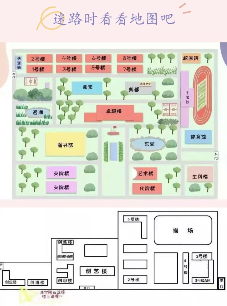 4.三号楼的北侧就是西院操场,创艺楼的北侧是西院篮球场