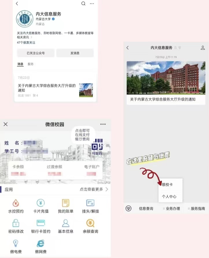 7.可通过微信公众号“内大信息服务”进行充值