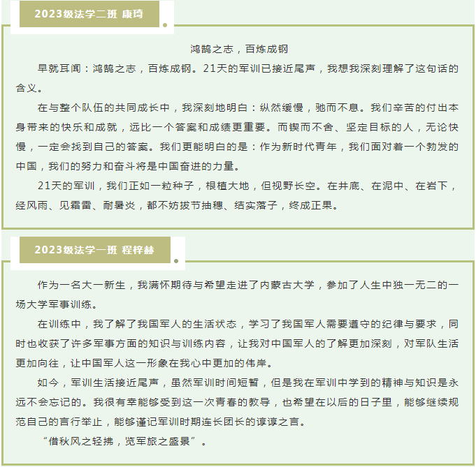 征军训一途,乘一苇以航。努力尽今夕,少年犹可夸。历过汗流浃背,尝试过突破极限,几日以来的种种记忆,早已在骄阳下开出热烈的花,结成甘甜的果。2023级同学们在为期21天的军训之旅中用坚定的信念和意志书写了他们的成长答卷,下面就让我们一起来回顾一下这段美好的军训生活吧!