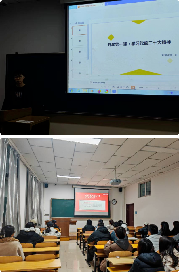 各班围绕“开学第一课”的主题,以“学习党的二十大精神”“安全教育”“心理健康教育”“校风校纪教育”为主要内容开展本次学习。