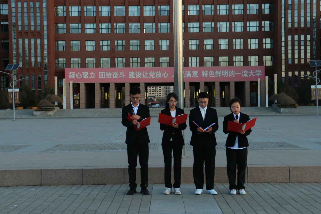 升旗仪式后,四位学生代表集体朗诵《月光下的中国》。他们怀揣着对祖国的无限热爱,深情向祖国告白,并号召青年学生做新时代的奋斗者,让青春在奋斗和奉献中绽放光彩。