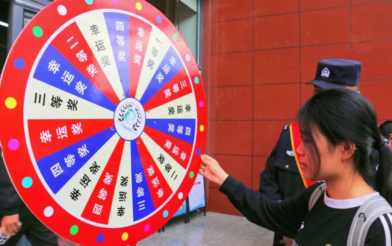 活动现场还设置了趣味转盘小游戏,通过学生易于接受的方式让反恐法律知识更加深入人心,大大激发了同学们的参与热情,提高了活动的参与度,也让同学们更加坚信只有大家齐心协力,才能共同筑起坚不可摧的安全防线。