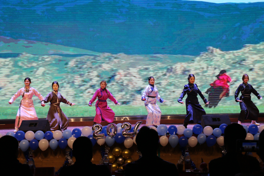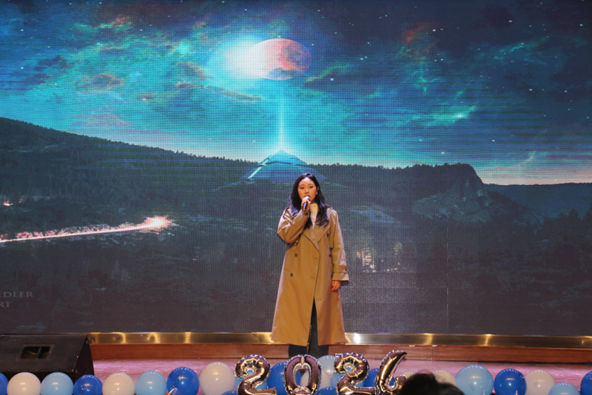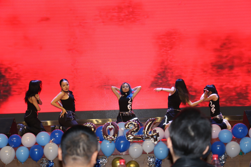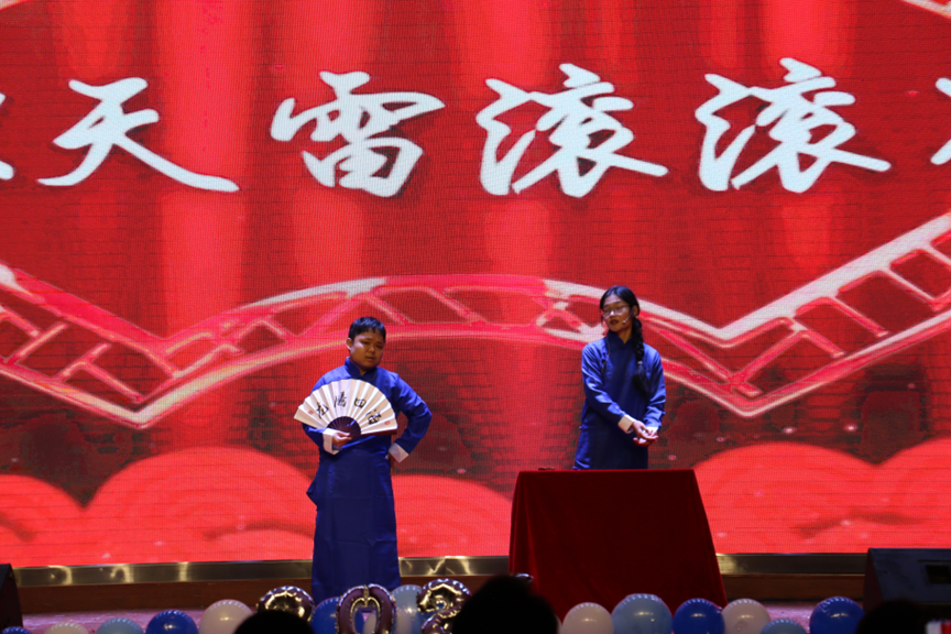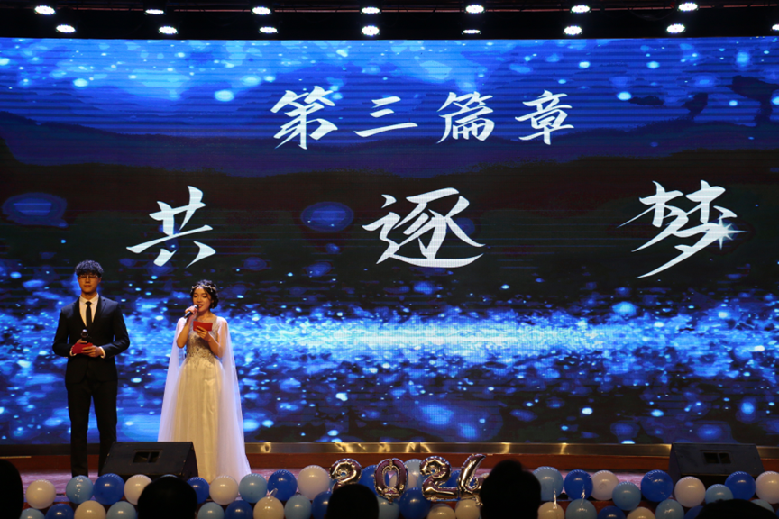 晚会以“欣相逢、踏新程、共逐梦”三篇章铺陈,节目精彩纷呈。舞蹈《我的未来式》与《塔沐沁之韵》轻盈欢快,洋溢着青春的律动;《希格希日》与《Snakes and Ladders》呈现一场视觉盛宴。歌曲《Diamond》与《稻香》旋律悠扬,令人陶醉;《疼爱妈妈》、《奢香夫人》、《不归女孩》及《晴天》各具特色,激荡心灵;《All of Me》与《安和桥》平静舒缓的旋律直击心弦。朗诵《我的祖国》慷慨激昂,唤起同学们的爱国情怀。相声《天雷滚滚》幽默风趣,逗得全场欢笑不断;舞蹈《Attention》动感四射,彰显青春活力;小品《谁杀死了周日》诙谐中不乏深意,警醒同学们切勿“拖延”。