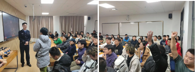 最后,中山市公安局政治处副主任王多为同学们深入讲解了此行的目的,具体阐述了公安职业生涯规划与公安系统的晋升路径,深刻总结了公安的工作使命与社会价值,并根据自身从警经历为同学们的职业选择提出了宝贵的意见。