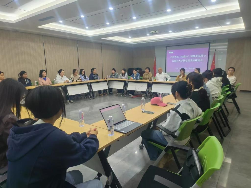 在座谈环节,秦主任围绕北京大成(内蒙古)律师事务所的队伍建设与业务发展布局进行了详细介绍;并就律师职业发展路径分享了个人见解,勉励大家要深耕理论沃土,夯实专业根基,积极投身社会实践,在实践中感受法律职业的使命与价值。