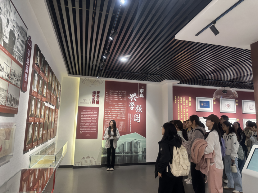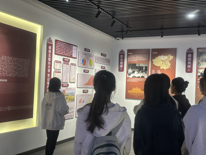 在讲解员的带领下,学员们依次参观了各主题展区。详实的史料将建校以来的奋斗历程娓娓道来,学员们在创校先贤展板前久久驻足,优秀校友的事迹激励着青马班学员不断进取,“求真务实”的校训精神在一代代内大人的奋斗中传承。