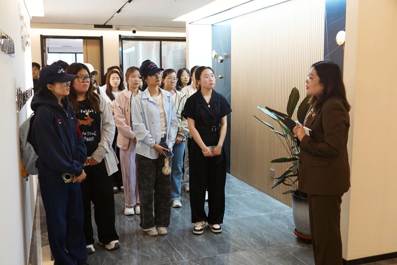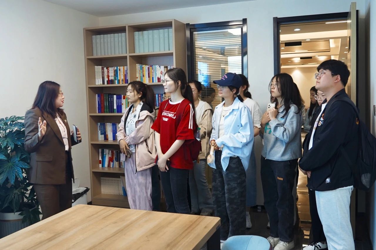 讲座结束后,于丹丹主任与卓娜律师带领大家实地参观了律所办公区域。现代化的办公空间和文化墙背后的故事,让同学们直观感受到法律实务工作的严谨与专业。