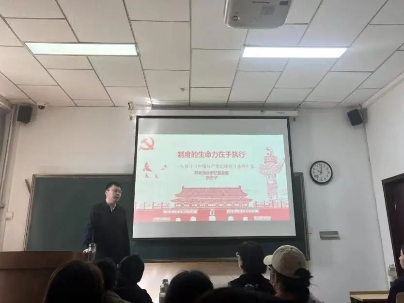 祖吉宁同志理论功底深厚、实践经验丰富。在讲座中,他以《条例》的发展演变历程为切入点,介绍了再次修改《条例》的背景、原因和重大意义,对《条例》修订的逻辑脉络和历史背景进行了详尽全面、深入浅出的讲解;接着从政治纪律、中央八项规定精神、组织纪律、廉洁纪律、群众纪律、工作纪律、生活纪律等方面对《条例》修订完善的内容进行了丰富诠释,并且结合鲜活案例对典型违纪行为进行了分析,引发了同学们的浓厚兴趣。