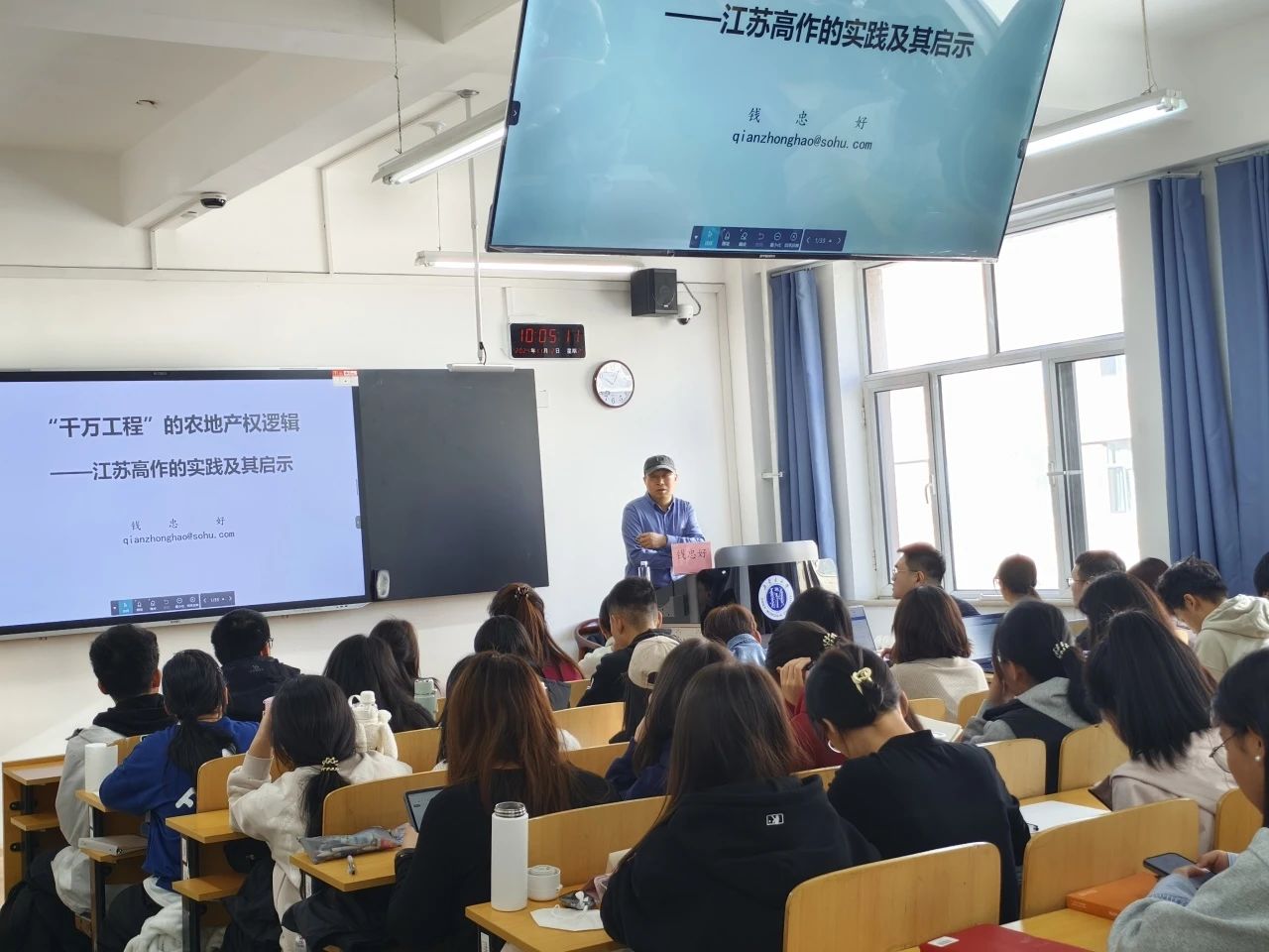 讲座伊始,钱忠好教授从2024年中央一号文件中的“千村示范,万村整治”工程切入,结合自身实践经验并且导入真实的农村发展变化图景素材,将其去农村调研的所见所闻和所学所感与同学们娓娓道来,带我们领略了几十年间中国农村的变化与发展。