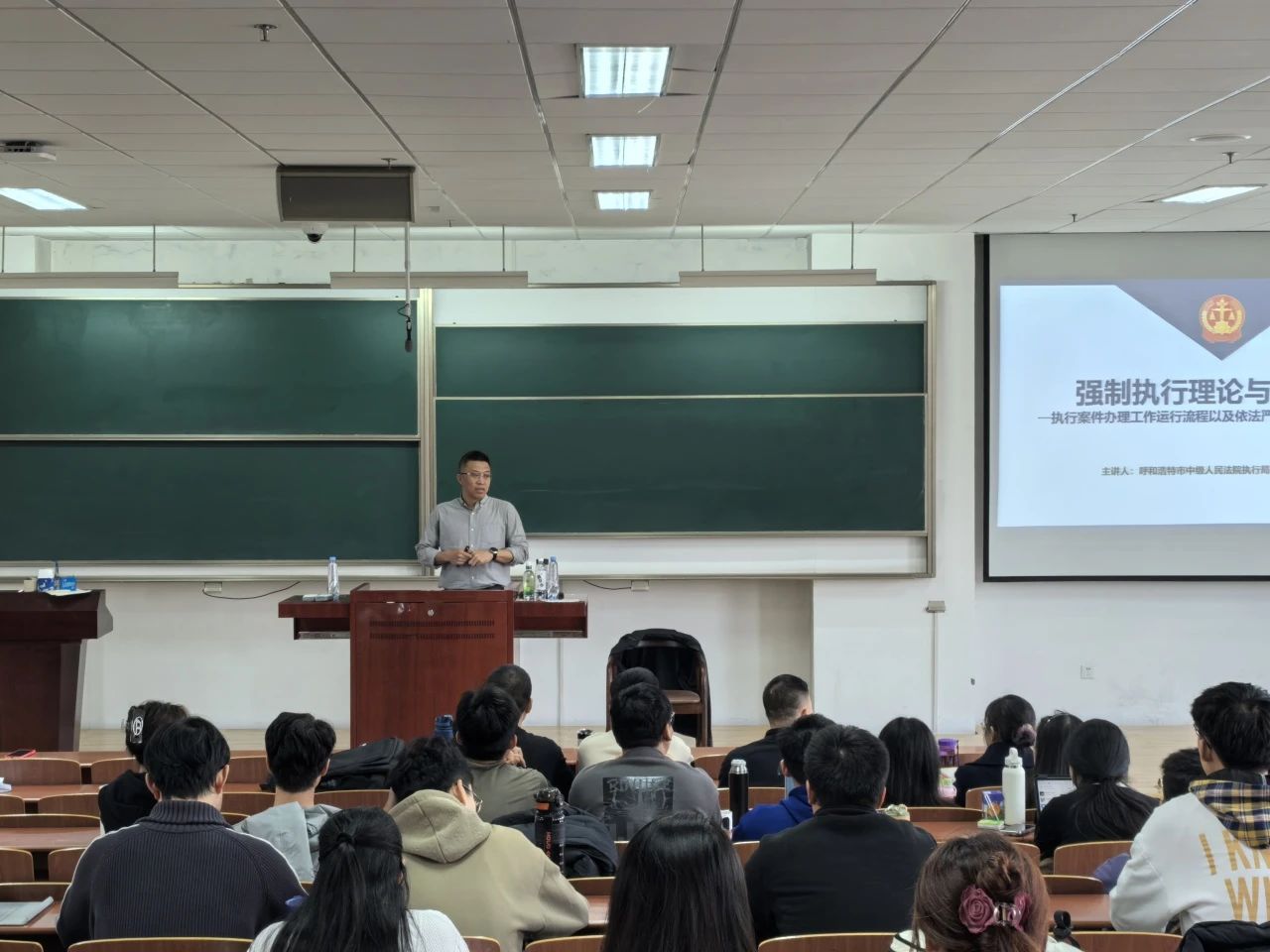 2024年11月20日下午,呼和浩特市中级人民法院执行局吴铁刚局长在玉泉校区卓越楼阶3A教室围绕“强制执行理论与实务——执行案件办理工作运行流程以及依法严格适用执行强制措施”开展专题讲座。讲座由高芙蓉副教授主持,BB贝博研究生和本科生热情参与。
