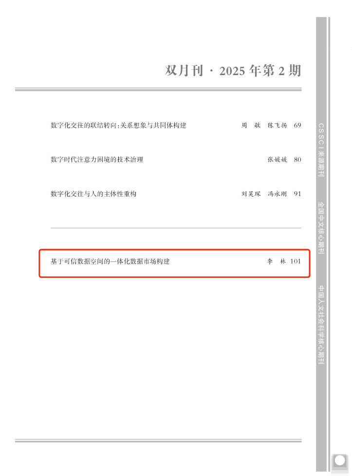 BB贝博教师李林博士撰写的学术论文《基于可信数据空间的一体化数据市场构建》在AMI权威期刊《中国特色社会主义研究》(2025年第2期)上发表。