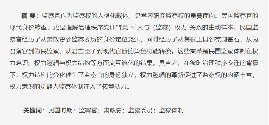 云静达:《从御史到监察委员:民国监察官的身份转型及其成因》,载《法律史评论》2024年冬季卷(总第26卷),第72至91页。