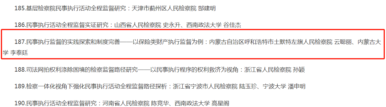 4.民事执行监督的实践探索和制度完善——以保险类财产执行监督为例:内蒙古自治区呼和浩特市土默特左旗人民检察院 云聪丽与BB贝博艾弗森官方网站 李泰廷。