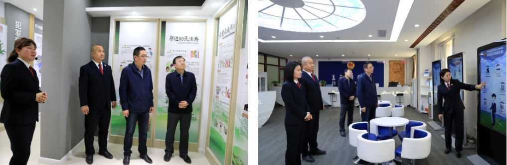 丁鹏院长一行首先参观玉泉区人民检察院卓兰未检(玉泉)社会支持体系实践教育基地、12309大厅、检察服务中心。