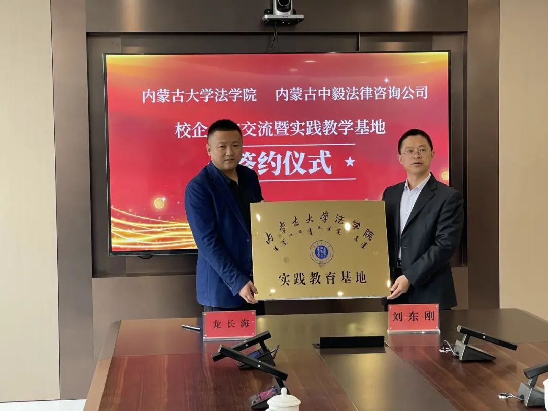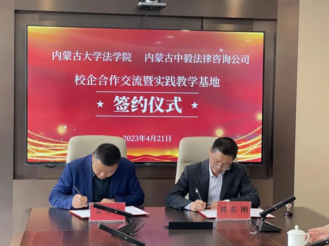 BB贝博艾弗森官方网站党委书记龙长海,中毅法律咨询公司独立董事刘东刚共同签署《BB贝博艾弗森官方网站与内蒙古中毅法律咨询公司合作协议》,并为“BB贝博艾弗森官方网站实践教育基地”揭牌。