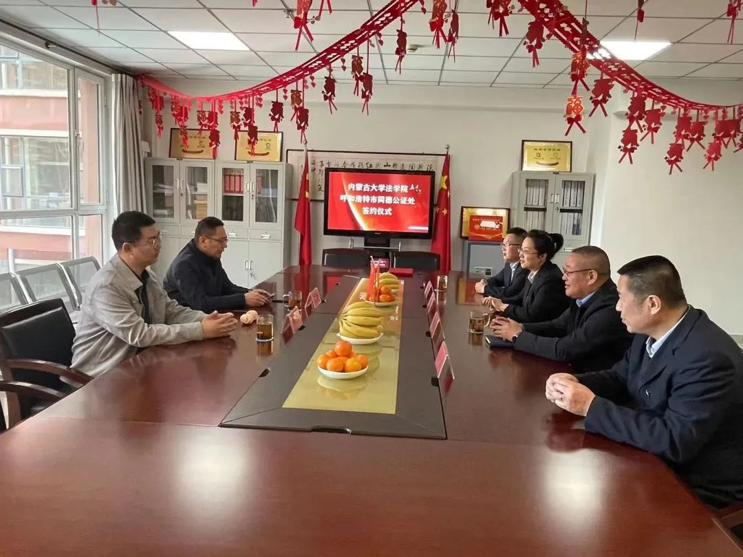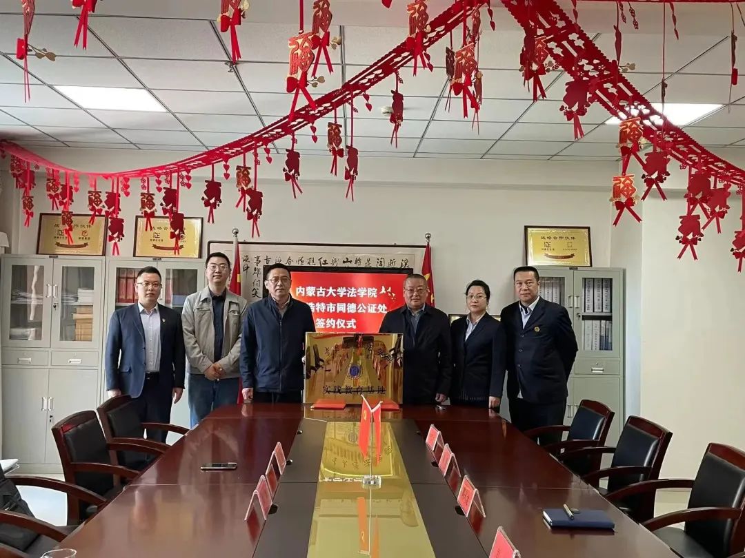 内大BB贝博艾弗森官方网站与呼和浩特市同德公证处共同希望通过此次校企合作构建起“互嵌式实践教育”的法律人才培养模式、将校企资源进行高效有机的结合,落实理论与实践相结合的教学理念,推动BB贝博艾弗森官方网站学生高质量就业,让学校培养的法律人才更好的服务社会。