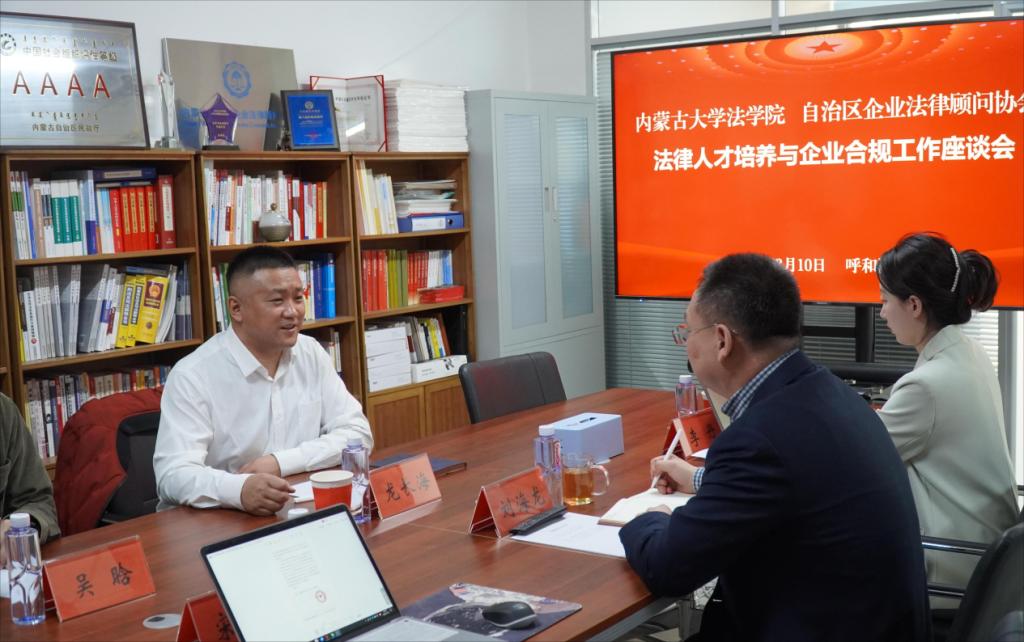3月10日上午,BB贝博艾弗森官方网站党委书记龙长海与BB贝博艾弗森官方网站就业专职辅导员吴晗走访内蒙古自治区企业法律顾问协会,开展院企合作交流座谈。内蒙古自治区企业法律顾问协会会长刘海龙、事业发展部主任宋新宇和综合部主管李丹出席座谈。