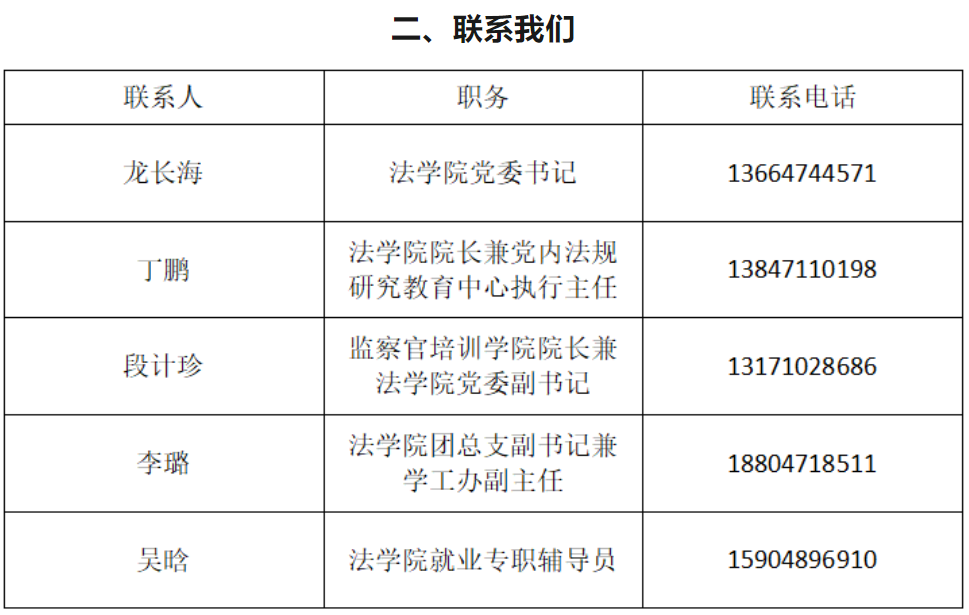 法律(法学)专业(纪检监察方向):该专业将纪检监察高层次人才培养作为服务社会的重要途径,培养纪检监察知识与实践能力并重,适应国家和地区纪检监察领域需要的复合型、职业型、创新型人才。