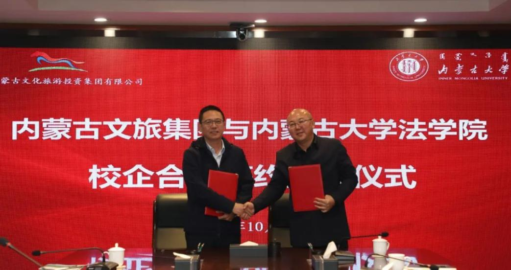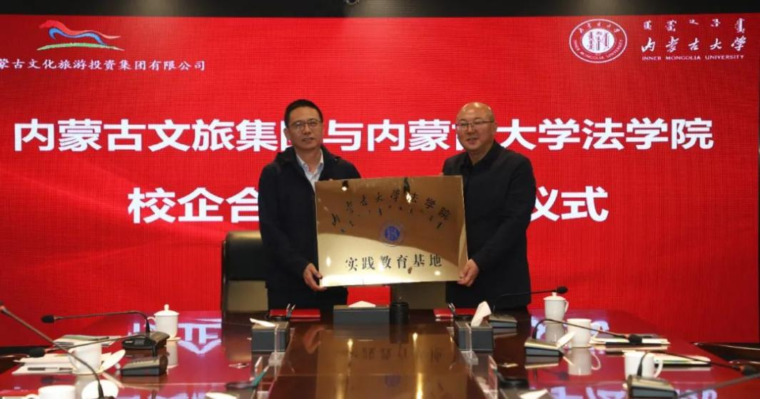 座谈会后,内蒙古文旅集团与BB贝博艾弗森官方网站签订合作协议,双方将进一步凝聚共识,在人才培养、学生实践、依法治企与合规管理建设等多个领域不断强化校企合作,形成人才、资源的共享与互动,BB贝博艾弗森官方网站丁鹏院长为内蒙古文旅集团颁发实践教育基地匾额。